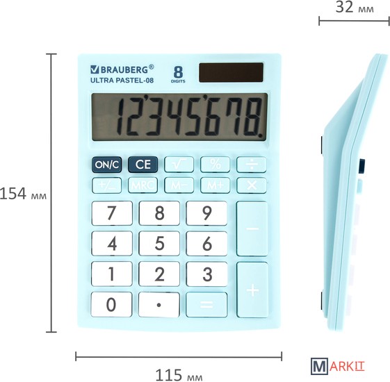 Бухгалтерский калькулятор BRAUBERG Ultra Pastel-08-LB 250513 (голубой) Код: 500464