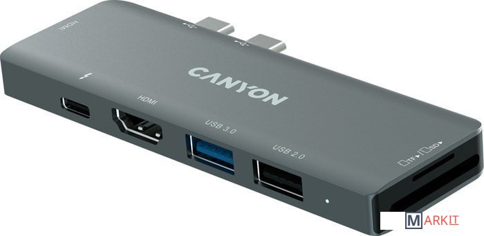 Расширьте функциональность своего MacBook, добавив все необходимые порты в одном стильном алюминиевом хабе с семью интерфейсами. Разработанный специально для MacBook с USB Type C, этот хаб позволит вам выполнять задачи значительно быстрее и удобнее, а также дает возможность подключить к компьютеру два монитора сразу. В хаб встроены картридеры для SD и TF-карт. Порт USB 2.0 обеспечит соединение и передачу данных со скоростью до 34 Мб/с, а USB 3.0 — до 68 Мб/с. 2 порта HDMI (4K при 30 Гц, Full HD 1080P при 60 Гц) — с мониторами, а USB Type C — быструю зарядку от сети электропитания. Хаб не требует установки ПО и начинает работать в момент соединения, а также позволяет переподключать устройства в режиме «горячей замены». Кроме того, корпус многопортового хаба выполнен в эстетике Apple, внешне сочетающейся со всеми устройствами этой компании и эффектно выглядит на рабочем столе.