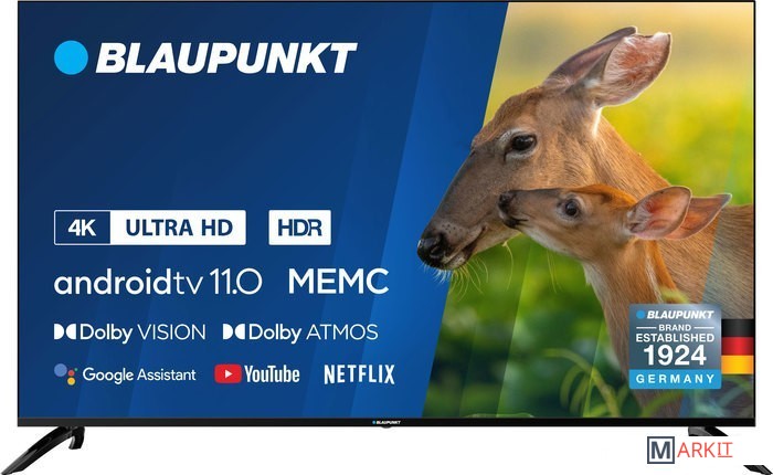 Blaupunkt обеспечивает экран сверхвысокой четкости, физическое разрешение которого составляет 3840 * 2160 (4K * 2K) с чипом декодирования 4K UHD, разрешение более чем в 4 раза выше, чем у телевизора Full HD 1080P. Изображение более предназначено для более тонкого просмотра.Новейшая технология High Dynamic Range (HDR), позволяющая добиться невероятной яркости, цвета, контрастности, детализации и размерности фильмов, снятых в этом формате. Теперь больше никаких компромиссов.Dolby Atmos выводит объемное звучание на новый уровень, обеспечивая истинное наслаждение 3D-звуком. Dolby Atmos становится обязательной функцией для серьезных поклонников кино. Dolby Atmos — это запатентованный аудиоформат, созданный для того, чтобы перенести тот же захватывающий, 360-градусный звук, который вы получаете в кинотеатре, в вашу гостиную Будьте готовы к новым впечатлениям с новым телевизором Blaupunkt.Новейшая операционная система уже на вашем телевизоре Blaupunkt. Еще больше улучшений производительности и конфиденциальности, а также множество новых функций, разработанных специально для телевизора.Быстро находите и воспроизводите любимые передачи, получайте ответы и управляйте своим домом. Ваш помощник теперь готов помочь на соответствующих устройствах Android TV. С вашего разрешения вы можете получить помощь по таким вопросам, как ежедневная сводка, информация о рейсах или поездке на работу. Узнайте последнюю информацию о погоде и пробках в вашем районе.Встроенное приложение chromecast передает любимые развлечения с телефона, планшета или ноутбука на телевизор. Телешоу, музыка, просмотр фильмов и даже прямые трансляции ТВ по жанрам через несколько приложений и источников одновременно, а затем воспроизведение шоу на большом экране. С помощью встроенного Chromecast вы можете передавать сигнал из 1000+ включенных приложений, таких как Netflix, Youtube, Google Play и др.Вы можете просматривать фотографии/музыку/фильмы, хранящиеся на устройстве USB, на экране телевизора.Теперь только те кнопки, которые вам действительно нужны. Netflix, Youtube, Amazon Prime Video и Shahid в один клик, не тратьте время, чтобы найти то, что вам нужно.